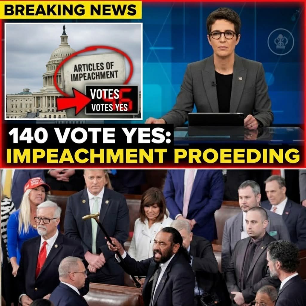 In a searing prime-time breakdown that instantly ricocheted across political media, Rachel Maddow pulled back the curtain on what she described as an extraordinary escalation inside Congress: as many as 140 lawmakers are now actively pushing for an impeachment vote against Donald Trump, plunging the U.S. political system into what insiders are calling a full-scale constitutional crisis.