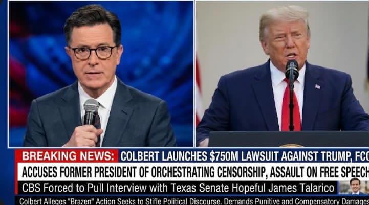 JUST IN: Stephen Colbert Launches $750 Million Federal Lawsuit Against FCC and Donald Trump in Punitive and Compensatory Damages , Accusing Trump of Orchestrating Brazen Censorship and a Direct Assault on Press Freedom and Free Speech by Forcing CBS to Pull Interview with Texas Senate Hopeful James Talarico .